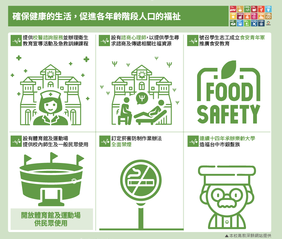 - 本校與當地醫療院所簽訂醫療合作,提供教職員工生就醫優惠及醫療服務。